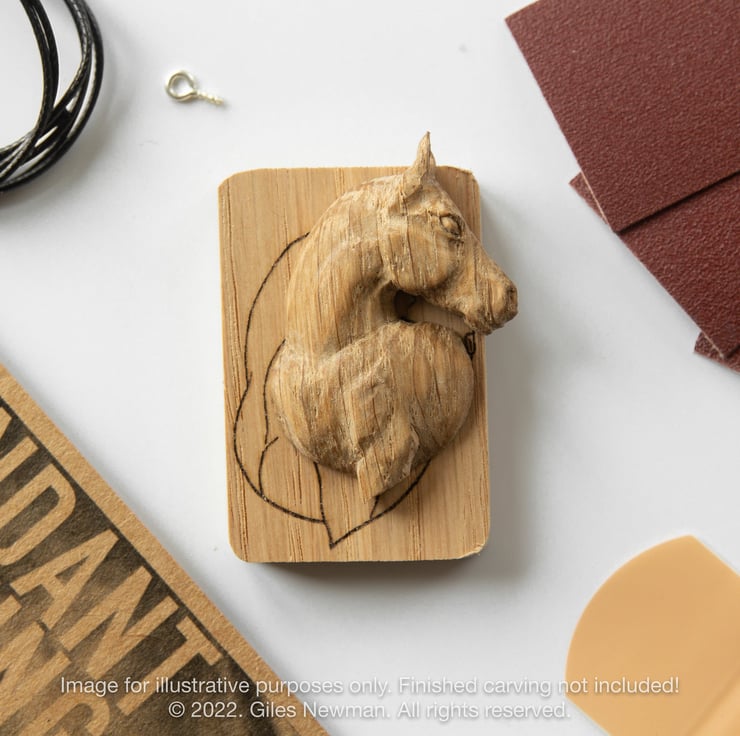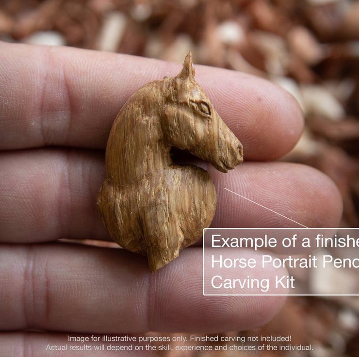 Carve your own Horse Portrait pendant from sustainably sourced Oak or Lime wood. The pendant carving kit contains all of the materials you need in order to carve a beautiful wooden pendant all you need to find is a suitable carving knife (KNIFE IS NOT INCLUDED - Morakniv 120 is a good knife to start with).