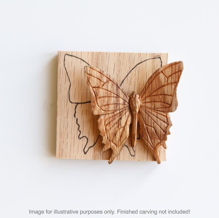 Carve your own Butterfly pendant from sustainably sourced Oak or Lime wood. The pendant carving kit contains all of the materials you need in order to carve a beautiful wooden pendant all you need to find is a suitable carving knife (KNIFE IS NOT INCLUDED - Morakniv 120 is a good knife to start with).