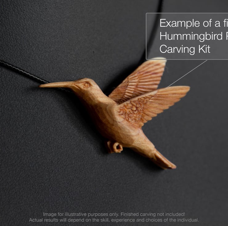 Carve your own Hummingbird pendant from sustainably sourced Oak wood. The pendant carving kit contains all of the materials you need in order to carve a beautiful wooden pendant all you need to find is a suitable carving knife (KNIFE IS NOT INCLUDED - Morakniv 120 is a good knife to start with).
