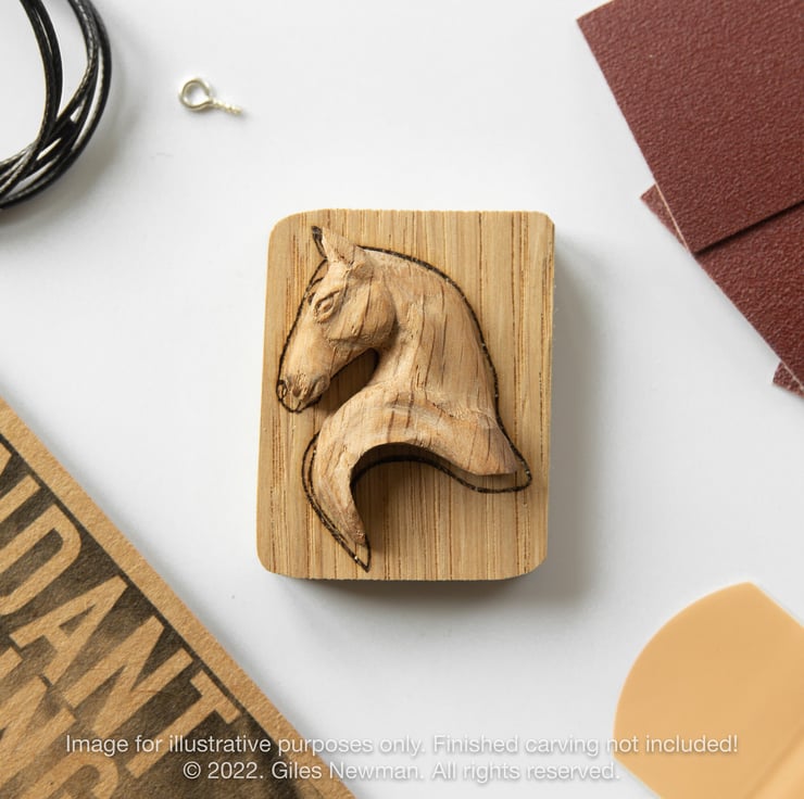 Carve your own Horse Portrait pendant from sustainably sourced Oak or Lime wood. The pendant carving kit contains all of the materials you need in order to carve a beautiful wooden pendant all you need to find is a suitable carving knife (KNIFE IS NOT INCLUDED - Morakniv 120 is a good knife to start with).