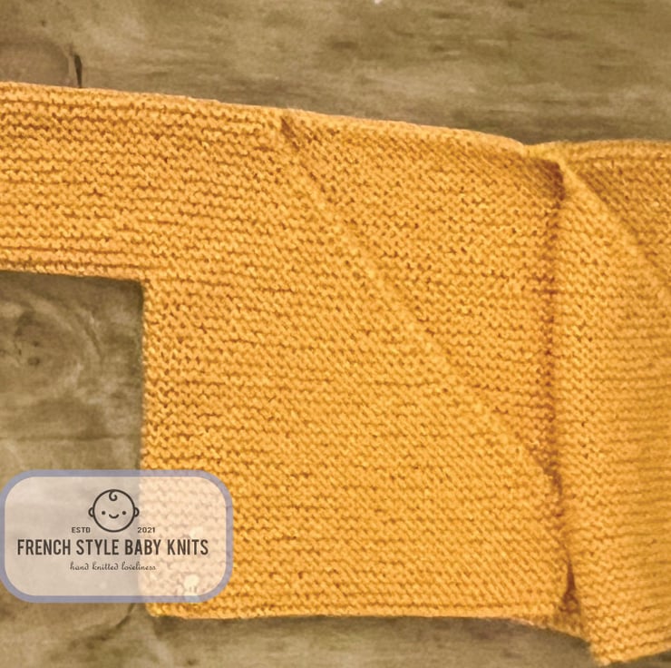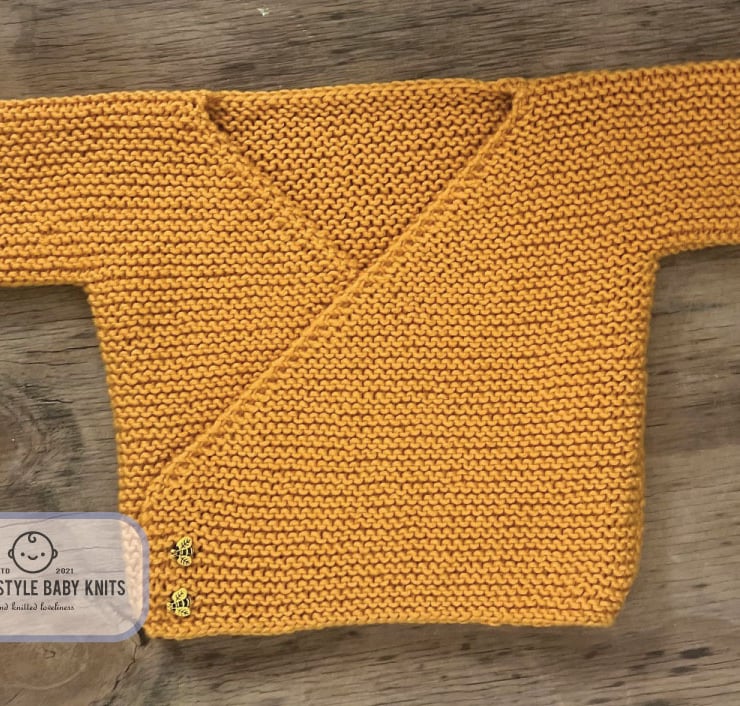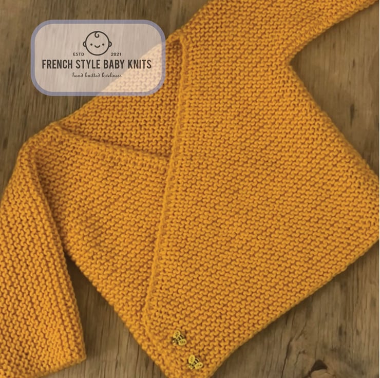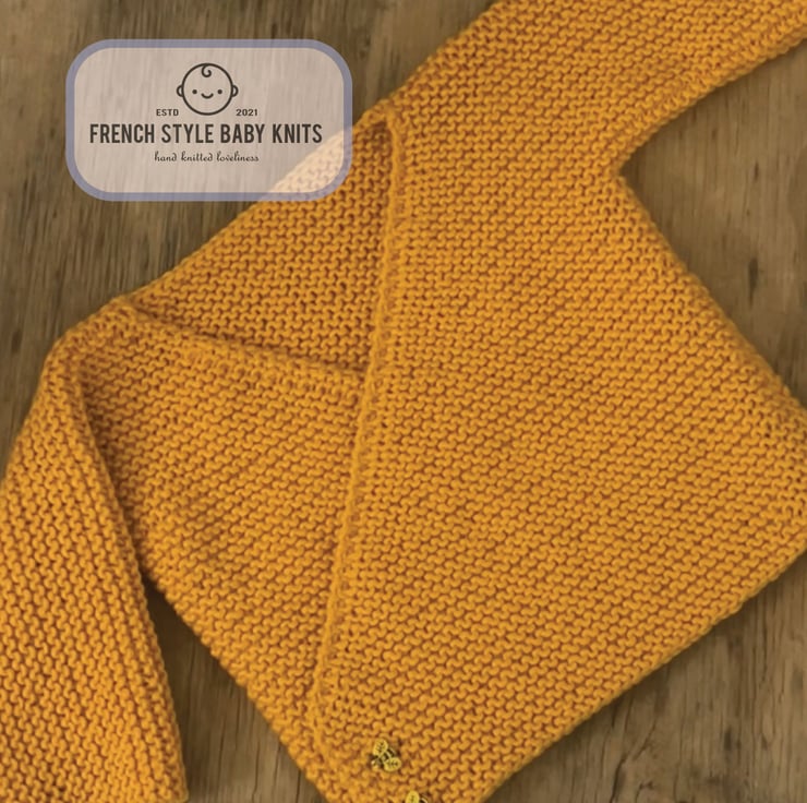 HAND KNITTED French Style Wrap Over Baby's Cardigan 0-3 months in Mustard/Ochre cotton knit wool