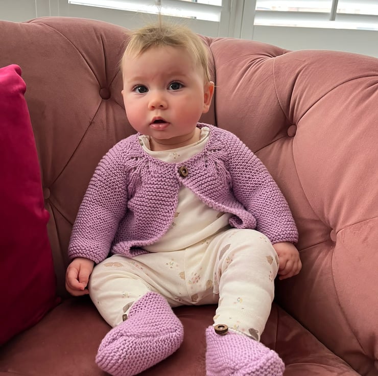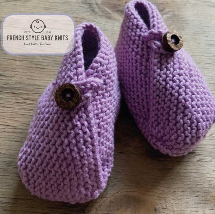 French Style Kimono Baby Booties HAND KNITTED 0-3 months in lilac cotton blend wool for a GIRL