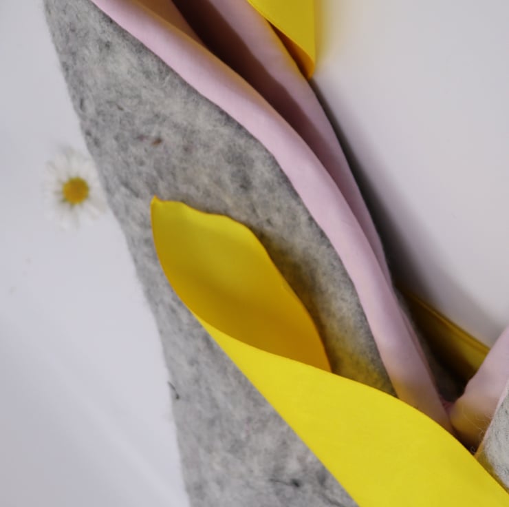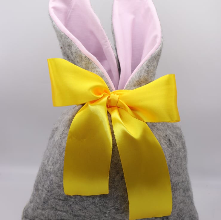 Add a touch of charm to your Easter celebrations with our handcrafted Wet felted Easter Bunny Bag. Made from soft grey toned wool and baby pink cotton, this whimsical bag is beautifully finished with a Sari Silk and Bamboo tail, along with a delicate ribbon for an elegant touch.