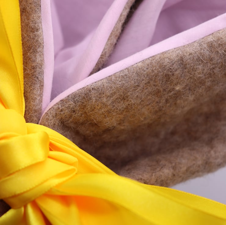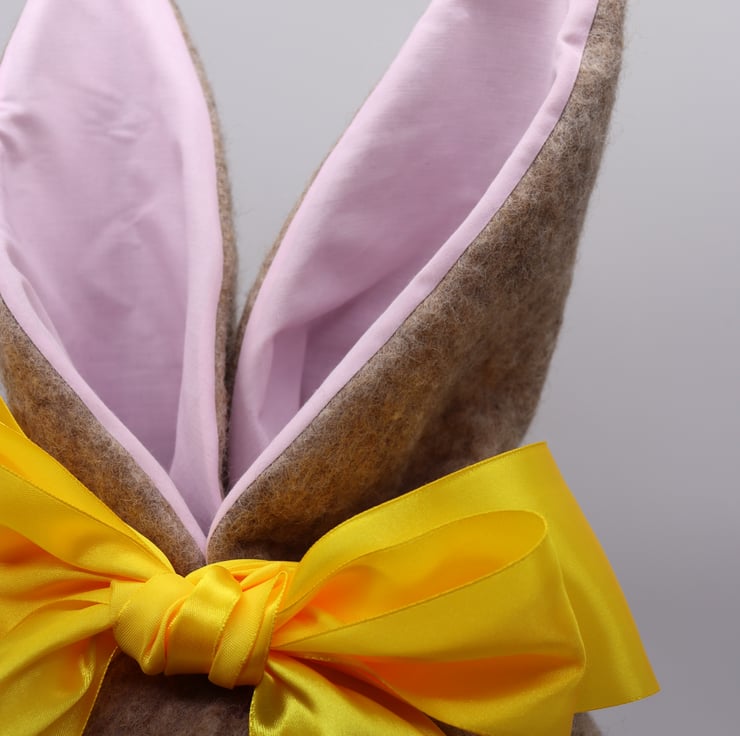Add a touch of charm to your Easter celebrations with our handcrafted Wet felted Easter Bunny Bag. Made from soft brown tone wool and baby pink cotton, this whimsical bag is beautifully finished with a Sari Silk and Bamboo tail, along with a delicate ribbon for an elegant touch.