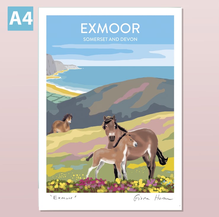 Exmoor, Somerset and Devon illustrated travel poster A4