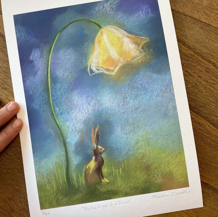This makes a lovely gift for anyone who loves hares, rabbits, fairytale or pastel art!