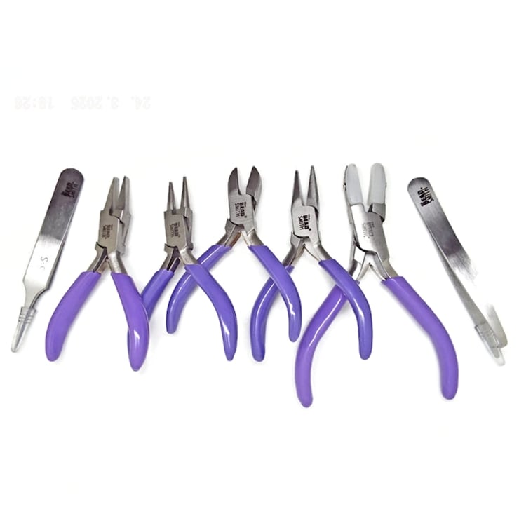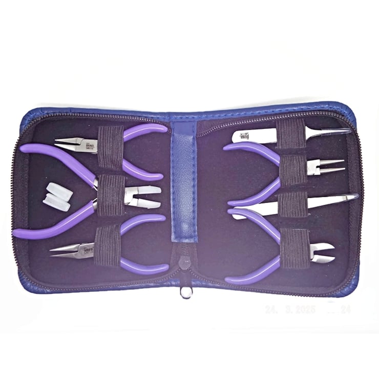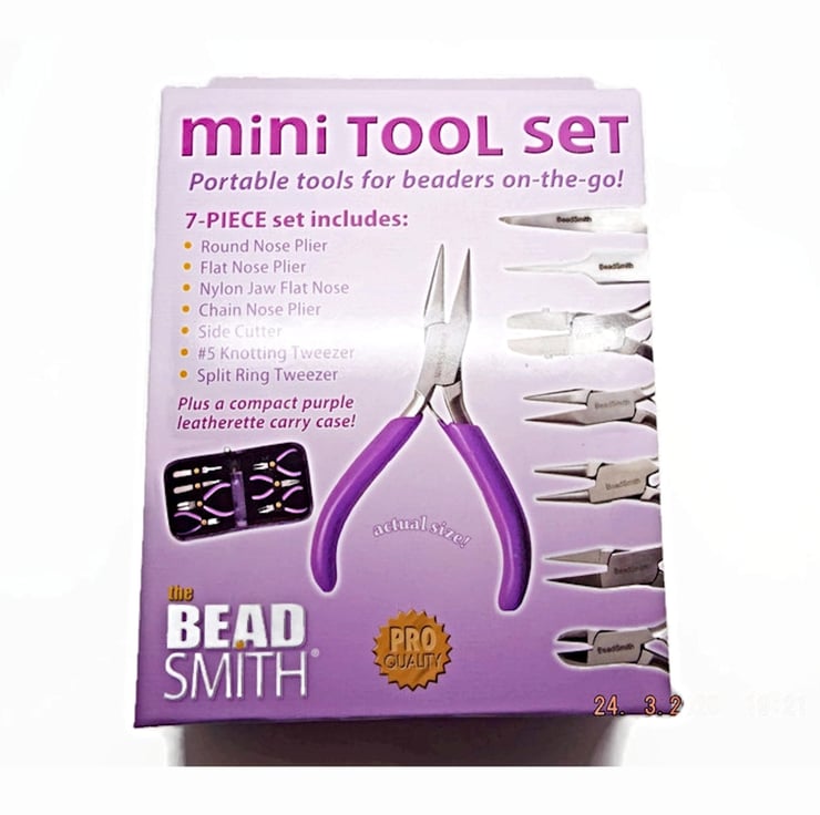 5 Sets of Mini Pliers, a Knotting Tool and a Split Ring Tool, along with a spare set of Nylon Jaw Plier replacements. A Great Boxed Gift for the Crafter in Your Life, and perfect for jewellery making on the go.
