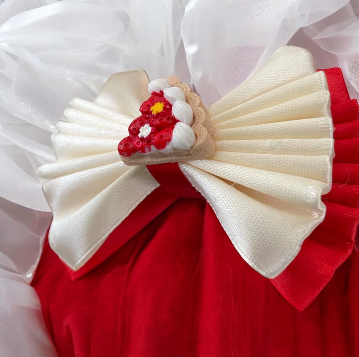 Add a sweet and fruity touch to your hair with this strawberry pie themed hair bow bobble. Measuring 9cm in length, it is perfect for any hairstyle. Attached to a Denman bobble for secure and comfortable wear. Keep your hair looking stylish and playful with this unique accessory.