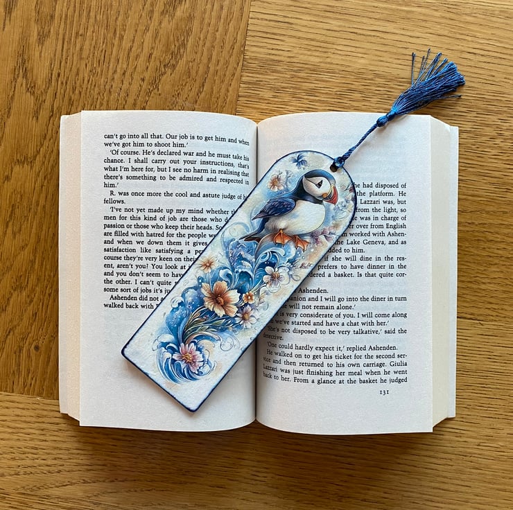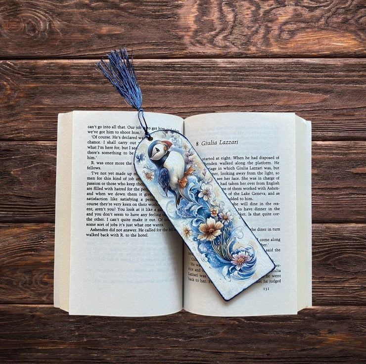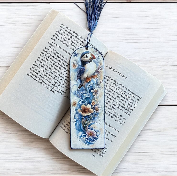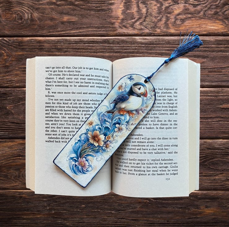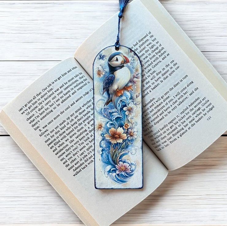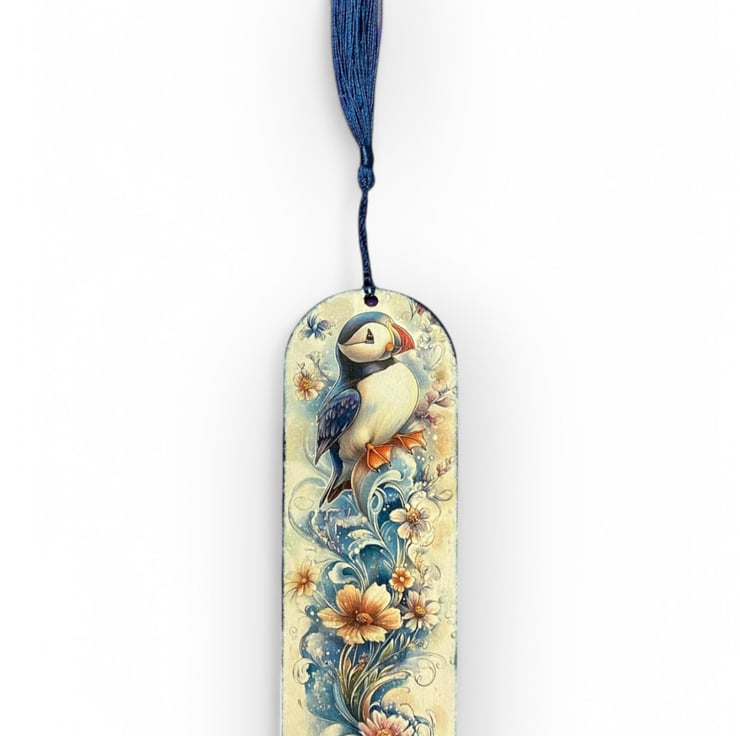 Wooden decoupage bookmark, featuring a cute puffin. Made from 2mm MDF, the bookmark is lightweight, durable, and perfect for book lovers. Each one is carefully decorated using the decoupage technique. Approxmately 17.5 x 6cm x 2mm.