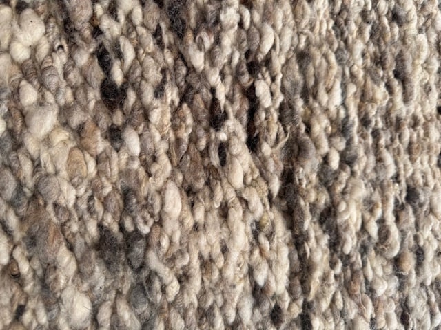 This beautiful, hand made wool rug has been lovingly woven in my studio in the far north of Scotland. 120 x 75 cm and reminiscent of the shingle beaches in Suffolk where I used to live. Made using locally sourced Blue Texel and Cheviot wool and a warp of organic cotton..