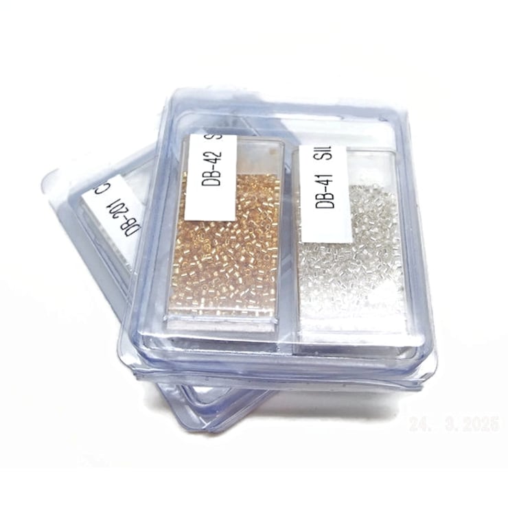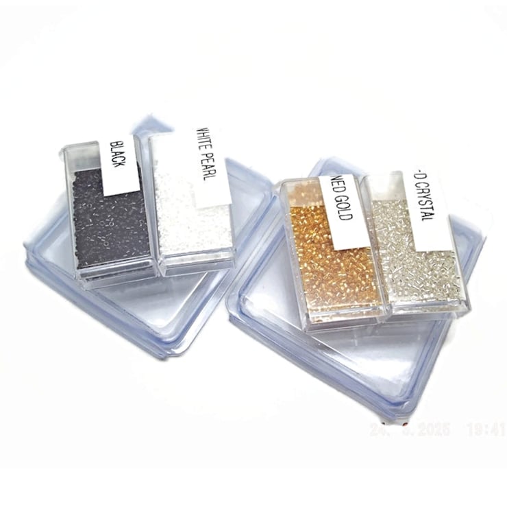 The Colours you will receive are: DB10 - Opaque Black, DB201 - Ceylon White Pearl, DB42 - Silverlined Gold & DB41 - Silverlined Crystal