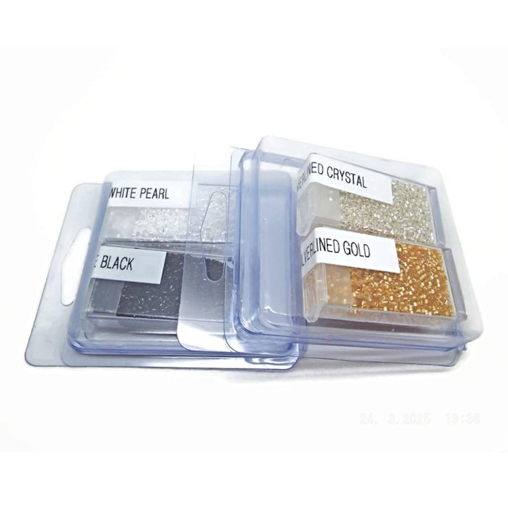 4 x 10g Grams of Miyuki Delica Seed Beads in a 4 Colour Starter Pack. You will receive 10g grams each of Black, White, Silver & Gold in flip-top tubs and clamshell packaging. Make beautiful hand crafted pieces with top quality Japanese Seed Beads.