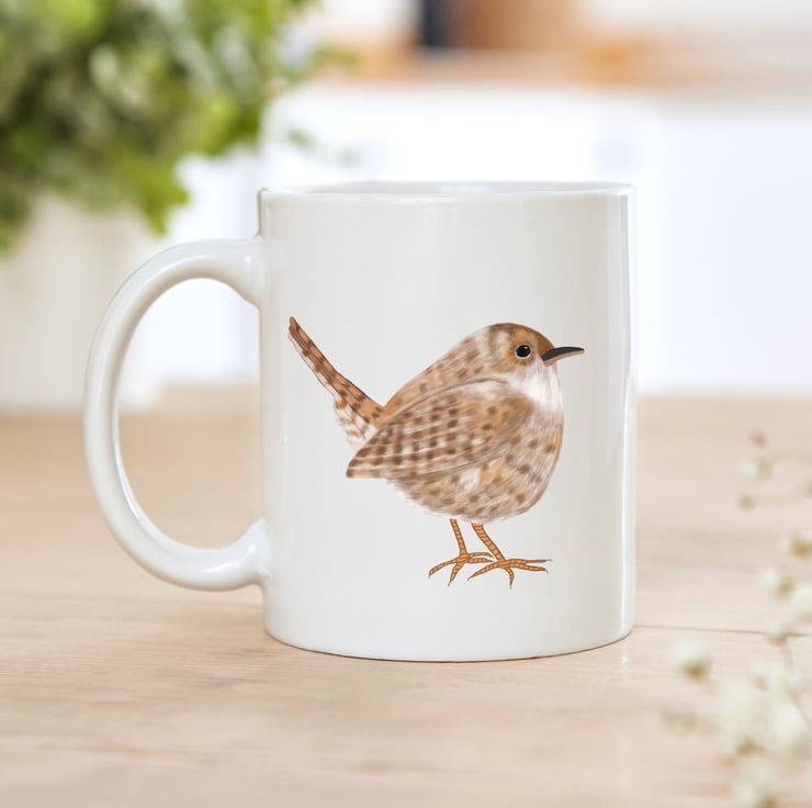 Ceramic mug featuring my original hand drawn design of an adorable little Wren bird who I've named "Willow". There is an option to purchase a matching hard backed coaster - please select from the drop-down menu at checkout.