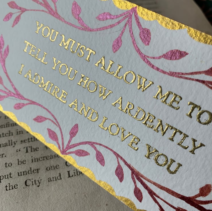Sustainable packaging is very important to me. Each bookmark comes supplied with a recycled envelope so that you can post it, and is protected by a recycled and compostable cello sleeve.