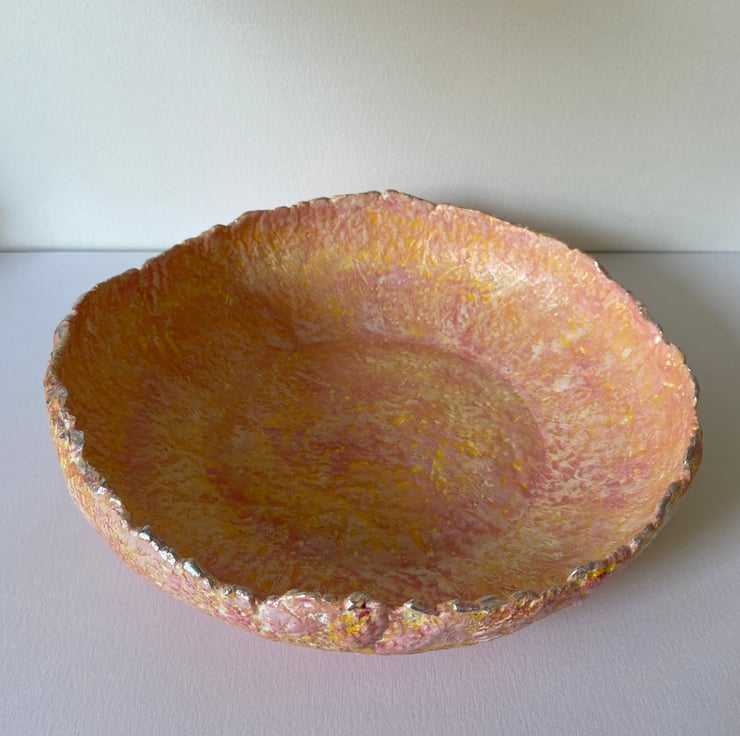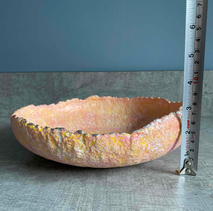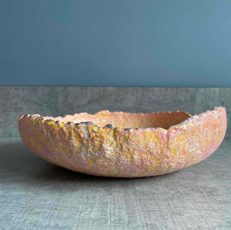 Handmade decorative paper mache fruit bowl, textured eco sustainable centrepiece