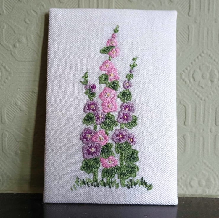 Embroider your own little patch of hollyhocks. Based on a vintage transfer pattern from Women's Own magazine from 1937, this kit is ideal for experienced embroiderers or confident beginners looking to develop their skills. Your finished picture can be simply displayed on the adhesive board supplied, or you can frame it in a hoop or a picture frame. You can also use it as a panel in a sewing project.