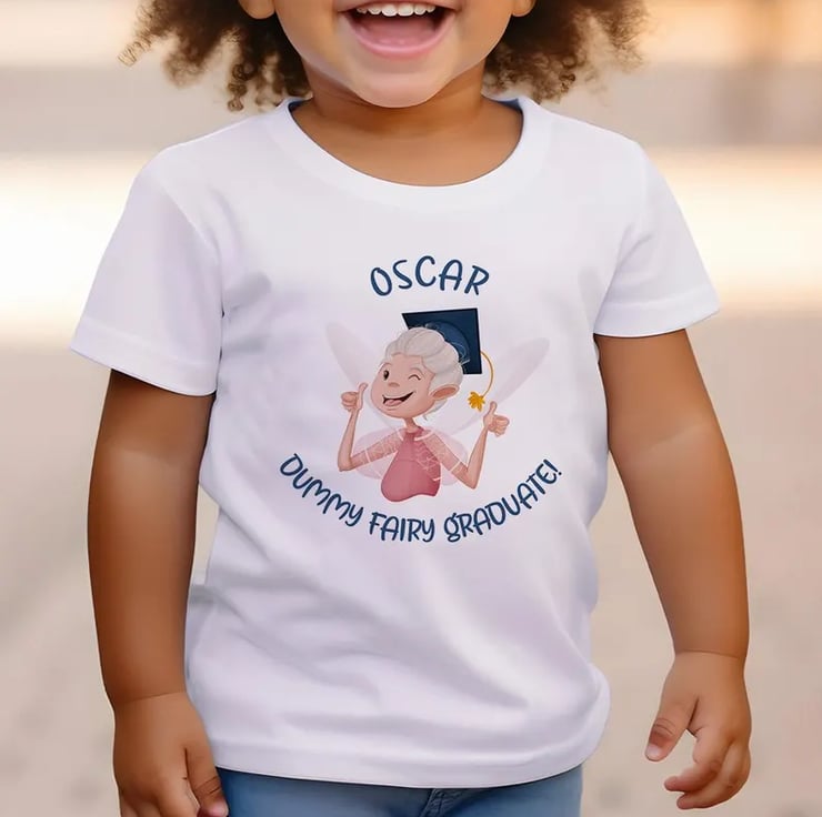 Has your little one given up their dummy? Celebrate this big milestone with a Personalised Dummy Fairy Graduate T-Shirt!