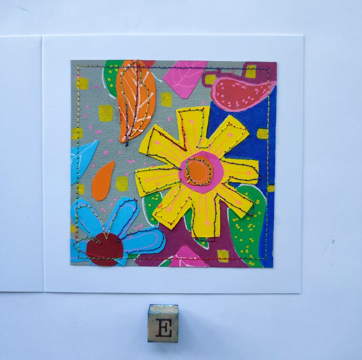 Handpainted and original artwork greetings card of brightly coloured flowers. A modern, contemporary card.