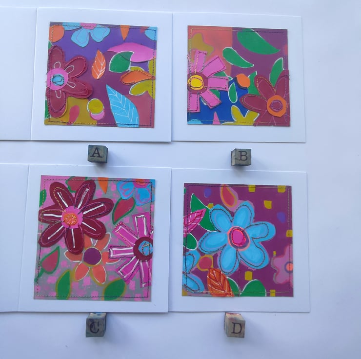 Handpainted and original artwork greetings card of brightly coloured flowers. A modern, contemporary card.