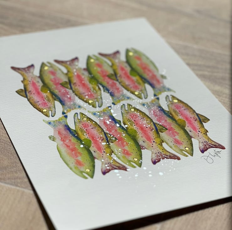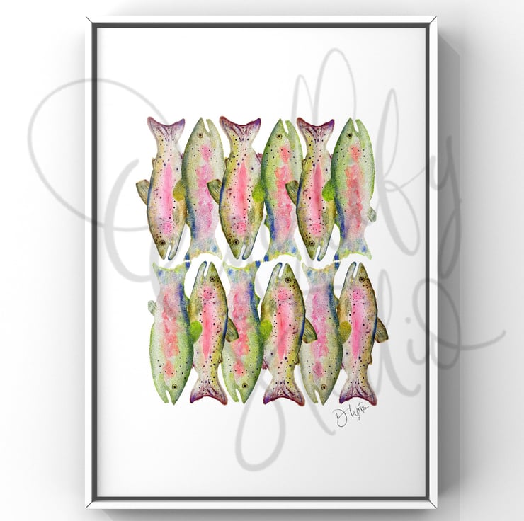 Hand Finished Watercolour Signed Art Print - Rainbow Trout Dozen