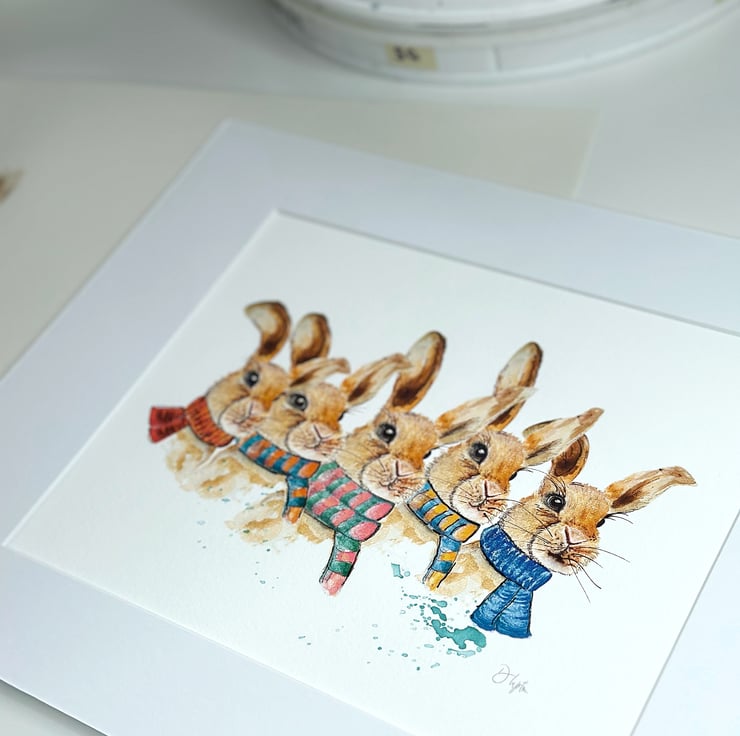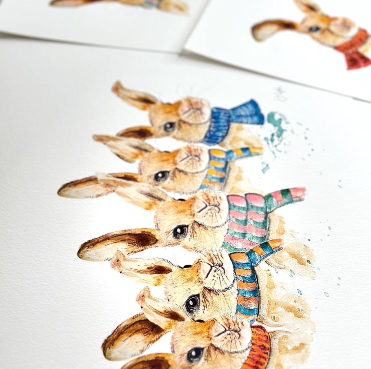 Watercolour Art Print - The Scarf Squad Rabbits Berry Kale Chomp Fennel & Fig