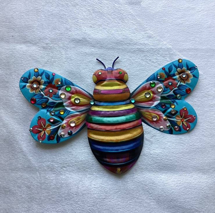 To make it I’ve used metal bee decoration, embellished it with rhinestones diamanté in different colours .