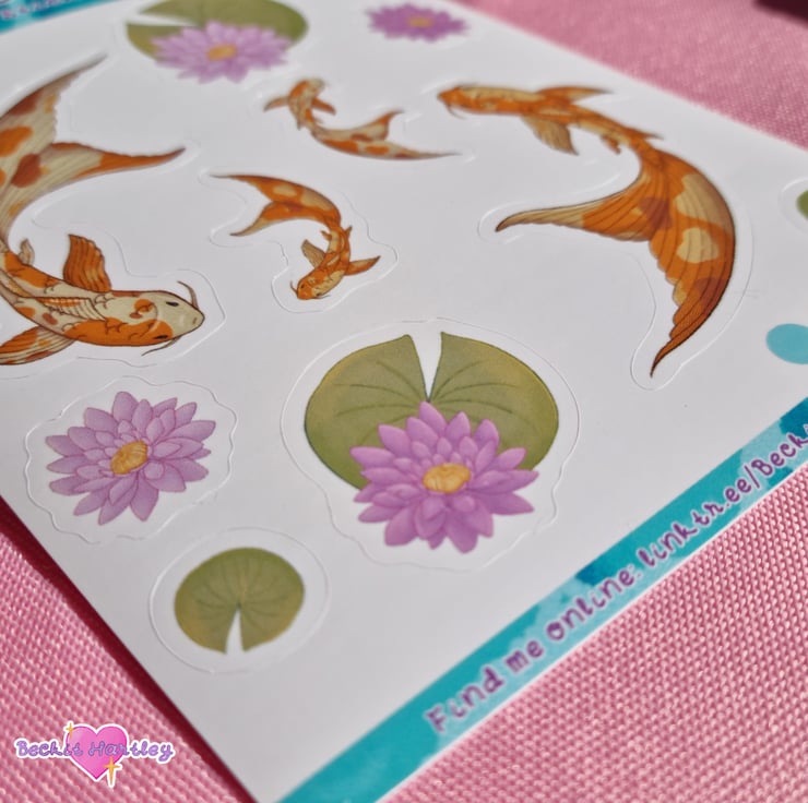 Bring some tranquillity to your journal, planner or letters! Featuring original illustrations of the koi carp and water lilies from your secret garden, this A6 sticker sheet includes 12 kiss cut stickers with a matte finish.