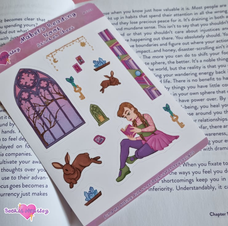 Add a homely touch to your journal, planner or letters! Featuring original illustrations of my own character in her reading nook, this A6 sticker sheet includes 13 kiss cut stickers with a matte finish.