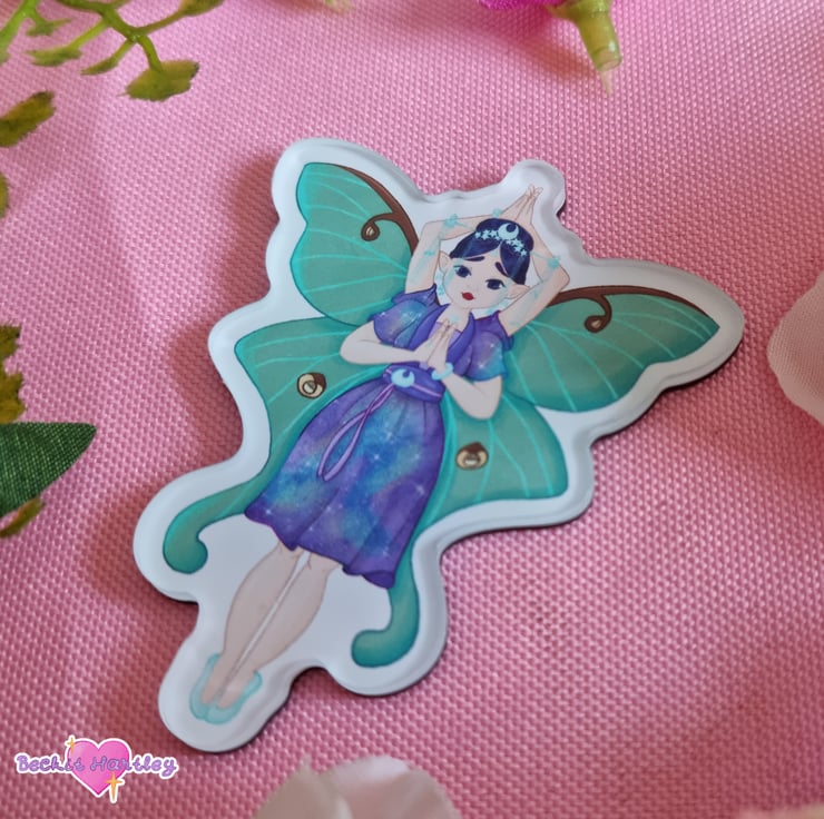 Featuring an original moon goddess illustration and approximately 6.5cm x 5cm in size, this magnet will demand pride of place on your fridge.