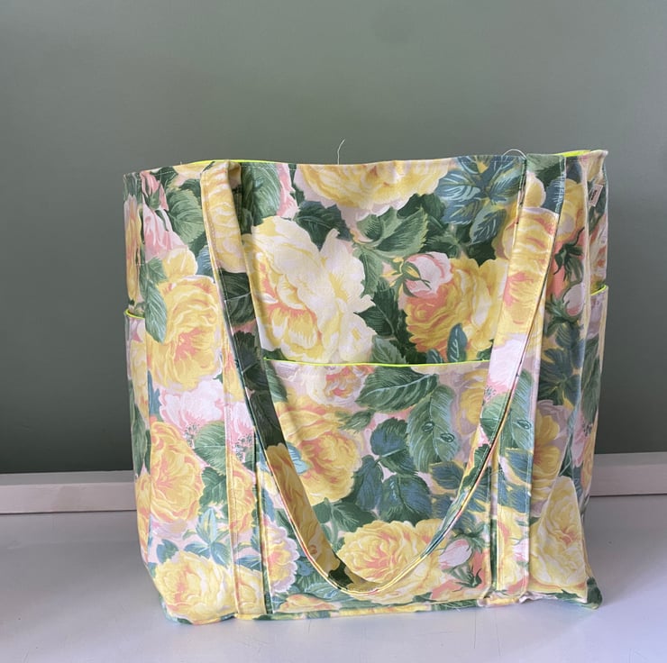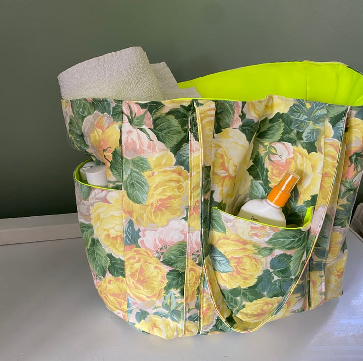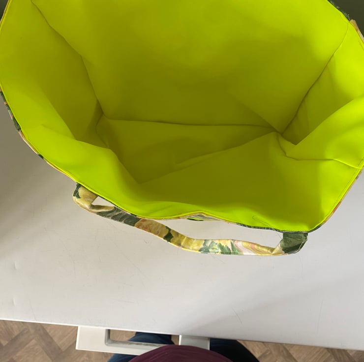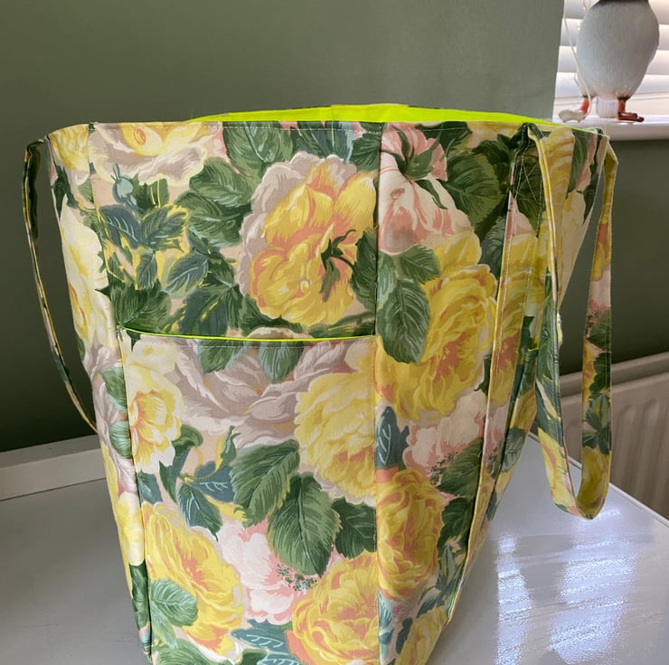 Made from a beautiful yellow floral cotton outer with a bright yellow waterproof lining