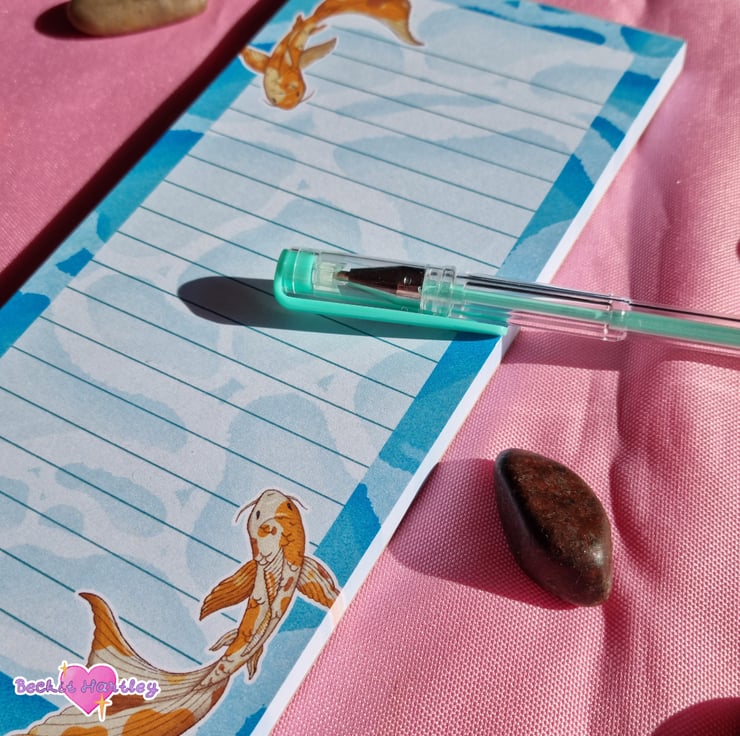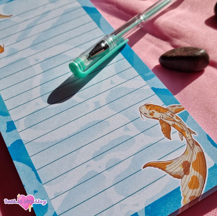 Featuring original illustrations of the koi carp from your secret garden, swimming together in harmony and a magnetic strip, this 50 page, lined DL notepad makes a nifty addition to your fridge for jotting down your shopping list.