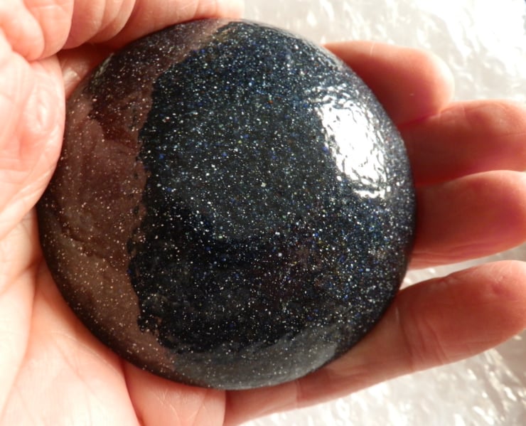The bowl is 74mm in diameter and 20mm deep. You might use it as a dressing table tray or a table centrepiece. Among other uses, customers at fairs have suggested that my bowls may be just the thing to use to drop a tea bag on when you take it from your mug or cup or may make good soap dishes.