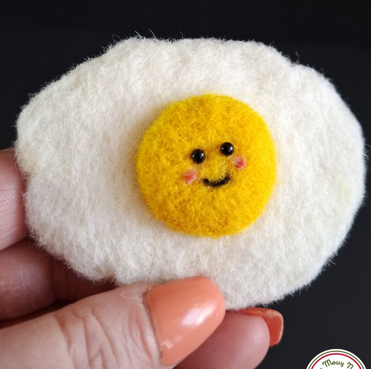 I made this happy fried egg magnet to sit, cheerfully, on the front of your fridge, or any other magnetic metal surface, with the intention of bringing a smile to your face.