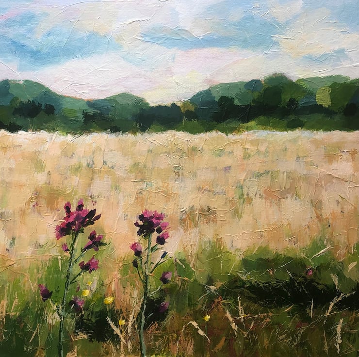 This mixed media painting was inspired by a local walk in nearby countryside. The grasses were gently swaying in the breeze.