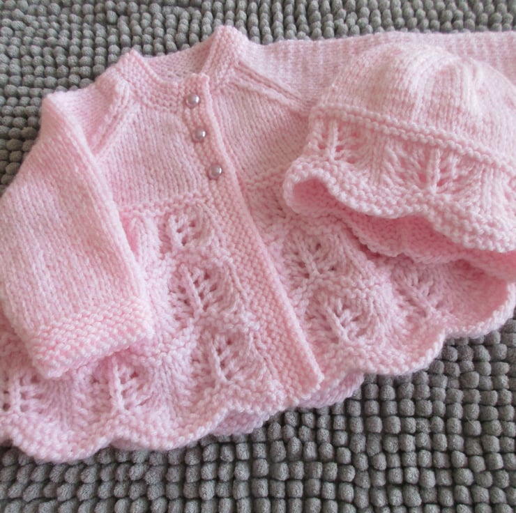 Cardigan / Matinee Coat with Lace Skirt Stocking Stitch Body and