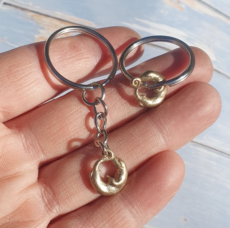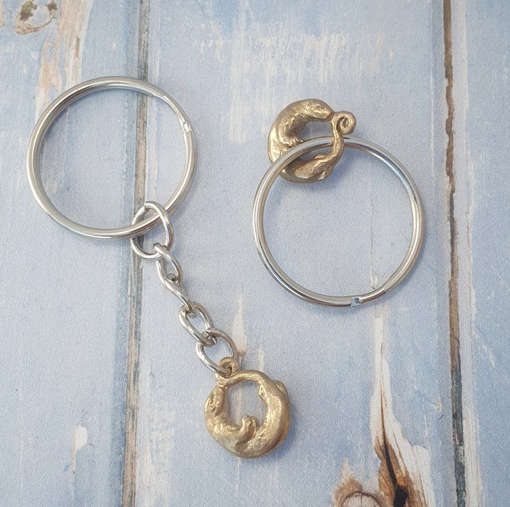 This lovely keyring is made with a bronze otter charm on a steel ring
