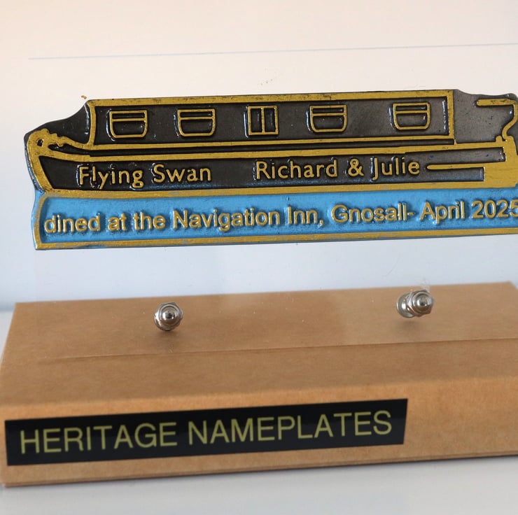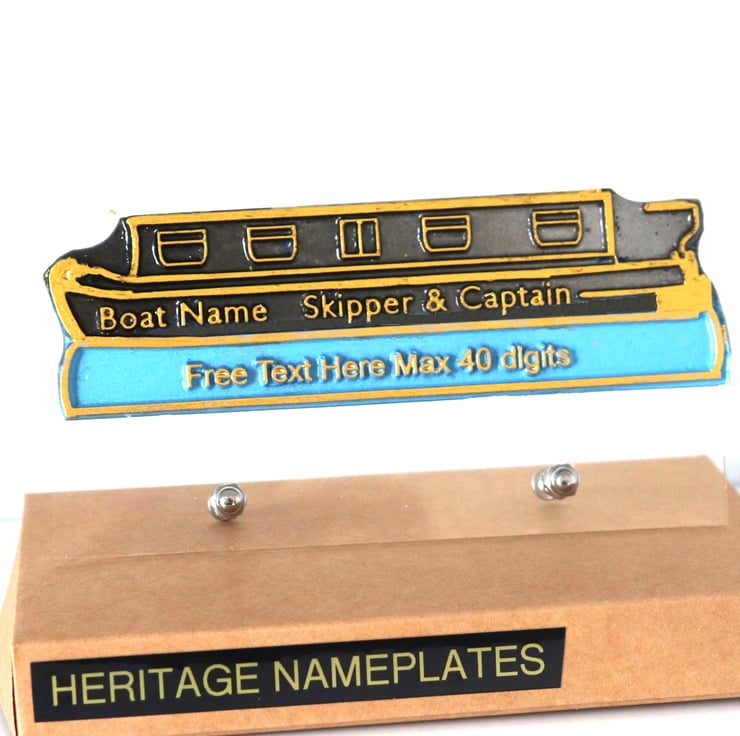 Canal Boat fully customized to celebrate any of your boating adventures, events or occasions. whether it be a superb canal side dining event, a visit to a boating festival, or, skipper ramming the lock gate etc. (Max 55 total digits)This is a fantastic small souvenir of your special event. You may also wish to mount it on our clear acrylic display stand to really add to the pizazz. Supplied at an additional cost of £4 A fantastic gift or memento that is contained in our attractive vintage brown postal box to fit through any post box Supplied with glue dots to fix to any vertical surface