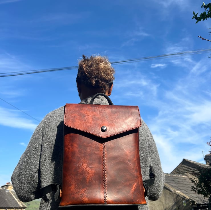 Leather backpack brown and black unisex handmade - multi-functional hand crafted leather backpack is stylish and spacious, it would make a very special gift for a loved one.