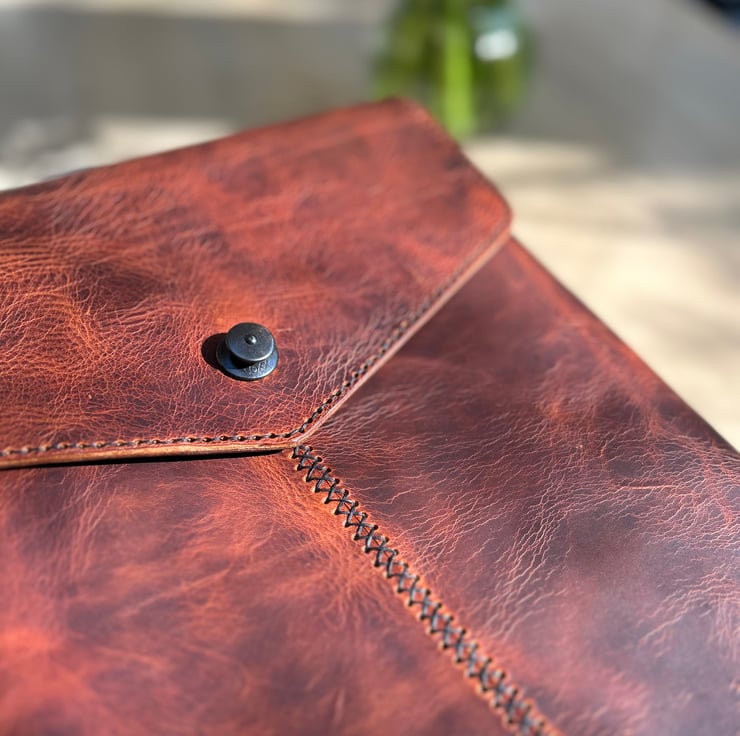 Every aspect of the process is crafted by hand cutting, punching, saddle stitching (sore fingers) bevelling and burnishing.
