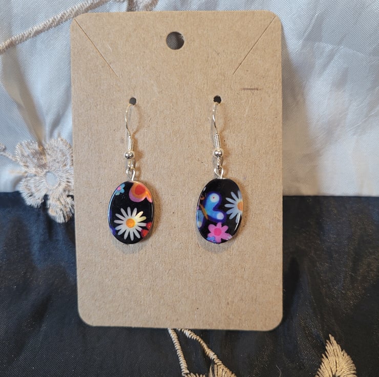 S925 Sterling Silver Earrings - Black Flower Pattern Type 3