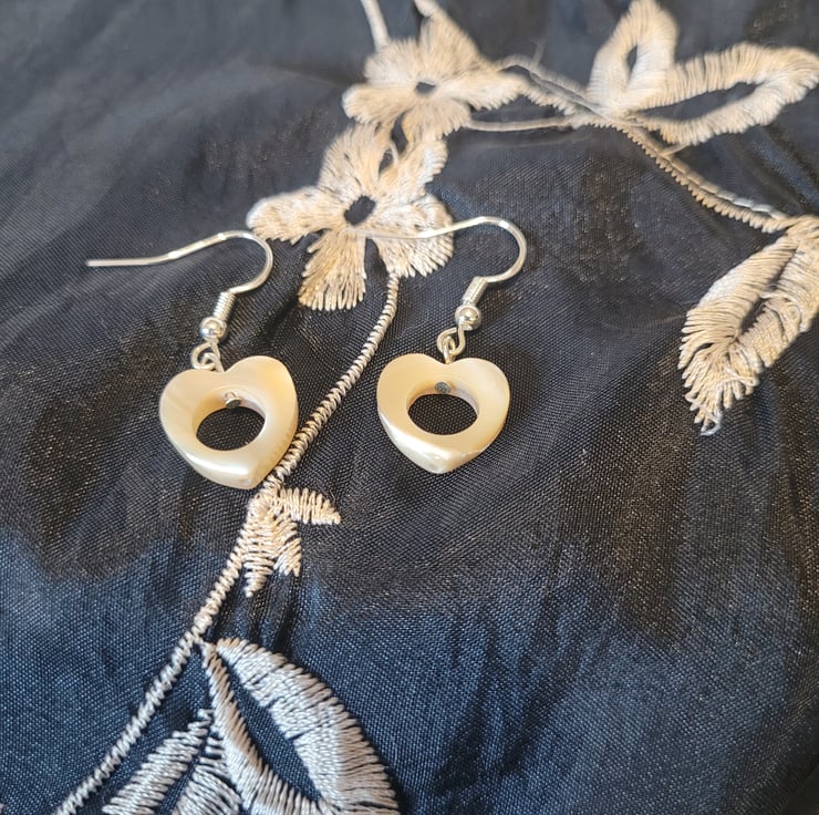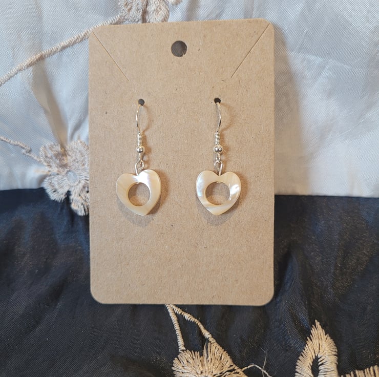Dangle Earrings, S925 Sterling Silver Hooks with White/ Cream Shell Hearts