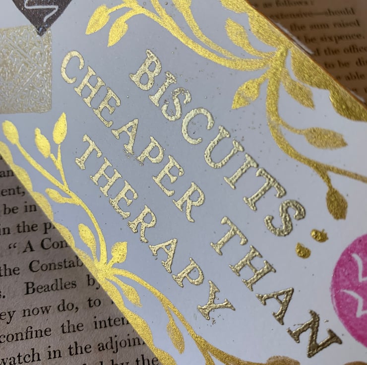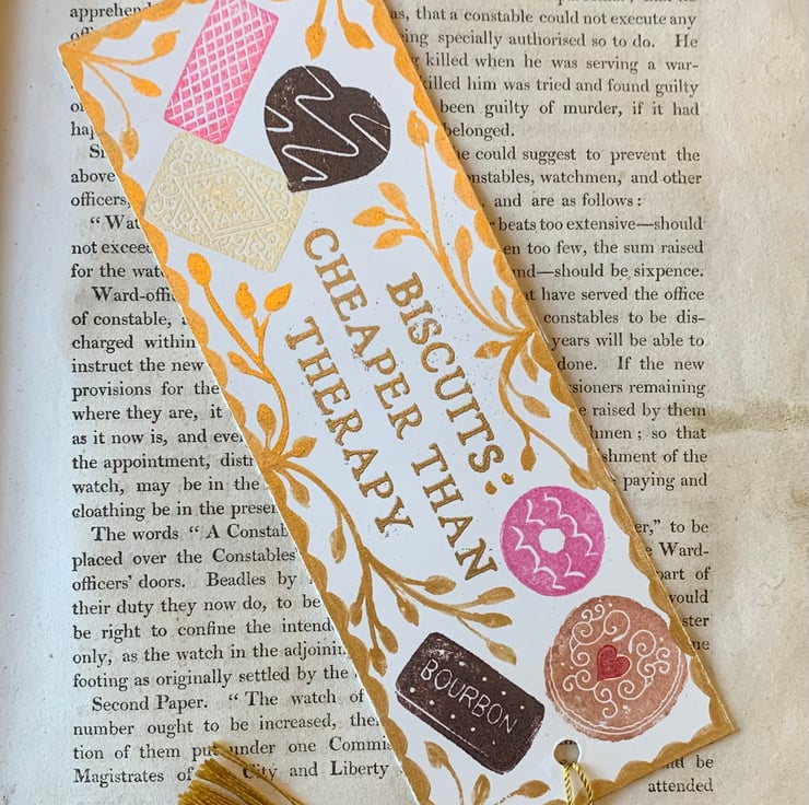 Biscuits: Cheaper Than Therapy Handmade Bookmark
