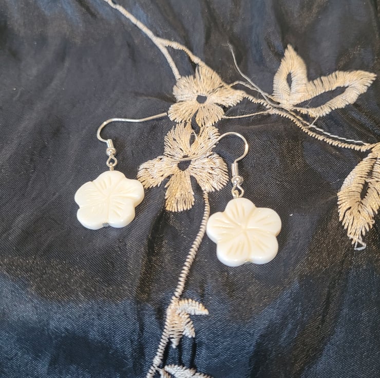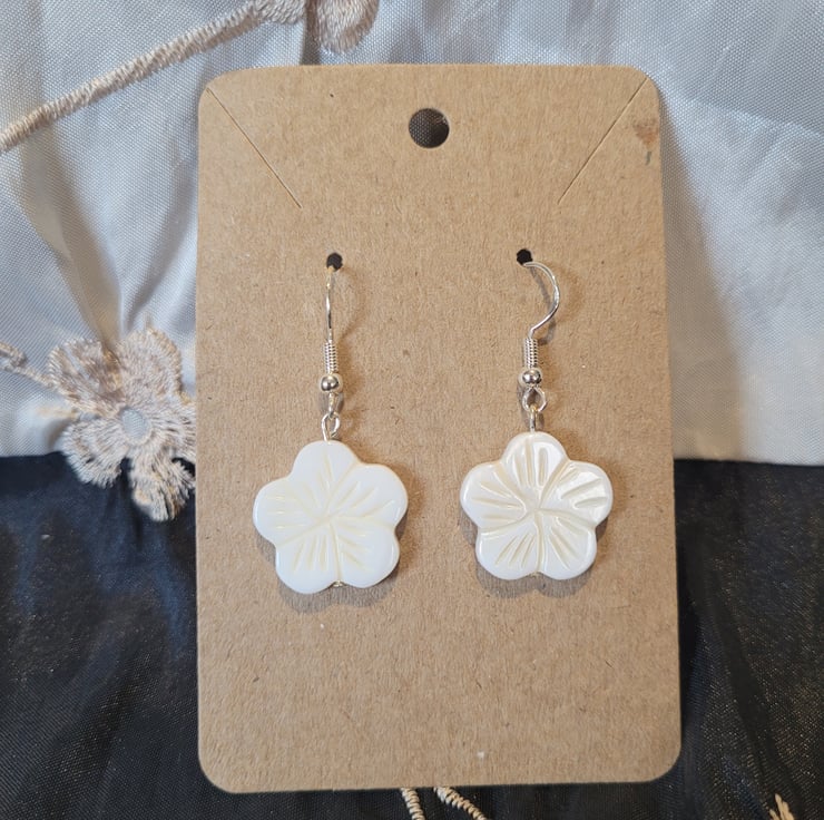Dangle Earrings, S925 Sterling Silver Hooks with Shell White Petals