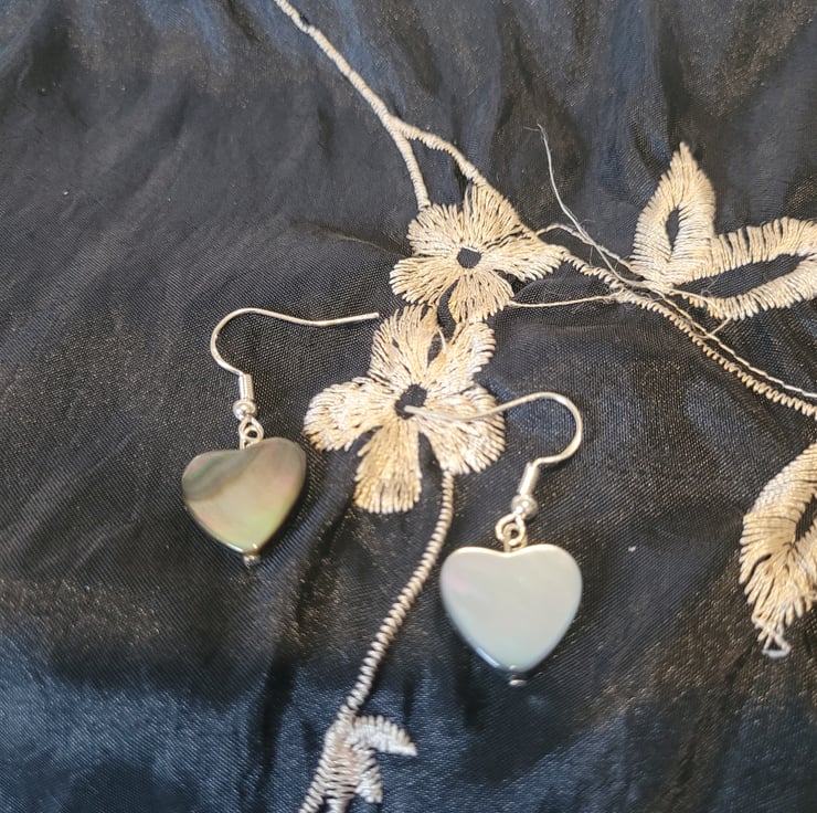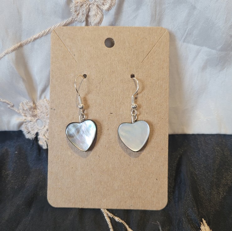 Dangle Earrings, S925 Sterling Silver Hooks with Shiny Shell Hearts