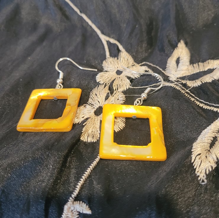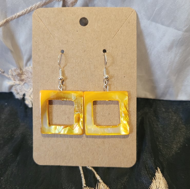 Dangle Earrings, S925 Sterling Silver Hooks with Yellow Shell Squares