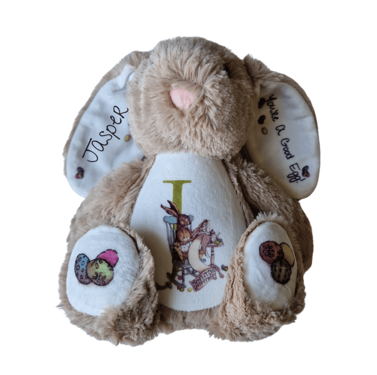 Step into a world of magic with this delightful Plush Easter Hare. Lovingly designed to radiate warmth and whimsy, it’s more than just a soft toy - it’s a personalised treasure that captures the enchantment of storytelling.