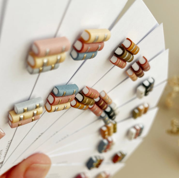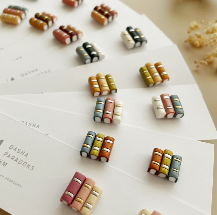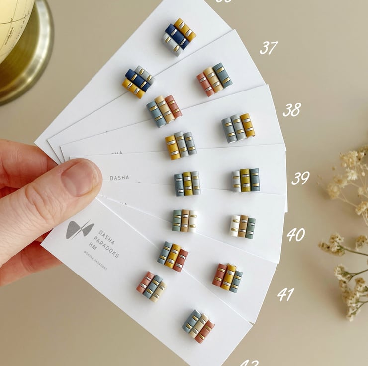 Miniature Book Stud Earrings – Handmade from Polymer Clay