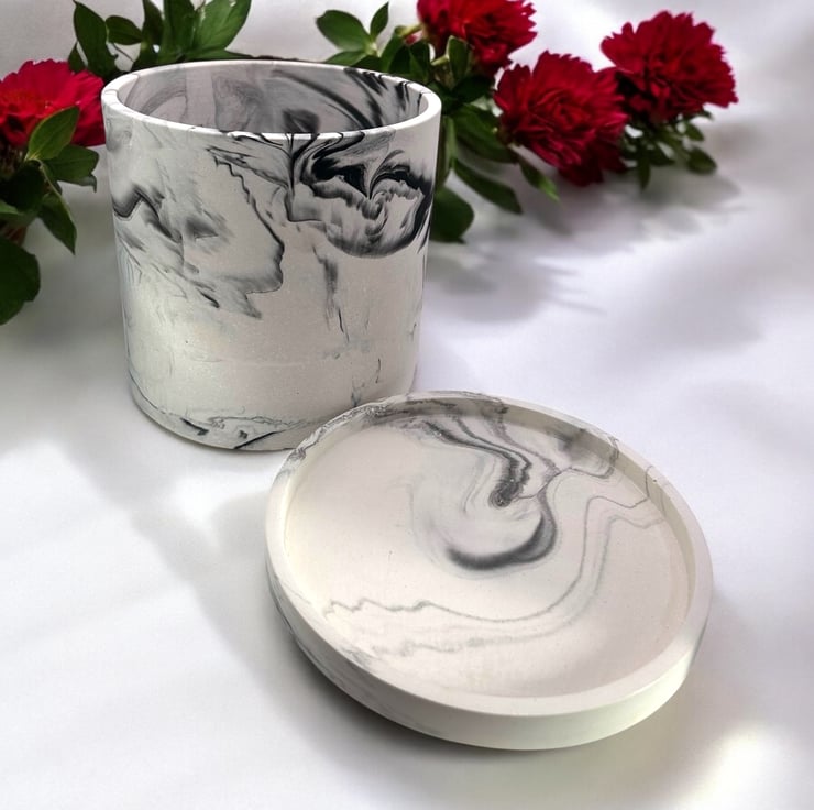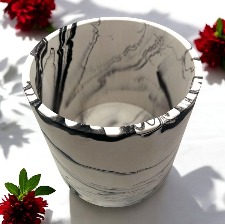 This extra-large plant pot features a stunning marble effect inspired by the natural beauty of real marble. Meticulously handmade from Cassini’s outdoor plaster—a material often used for restoring and repairing marble and stone—this pot has a smooth and tactile finish similar to marble. It is also water-resistant, making it suitable for indoor and outdoor use.