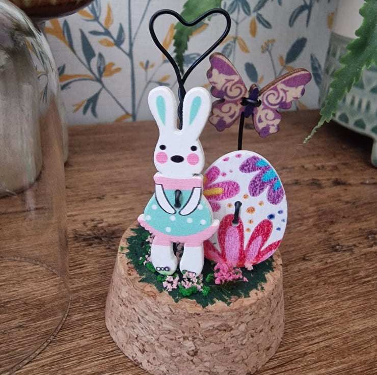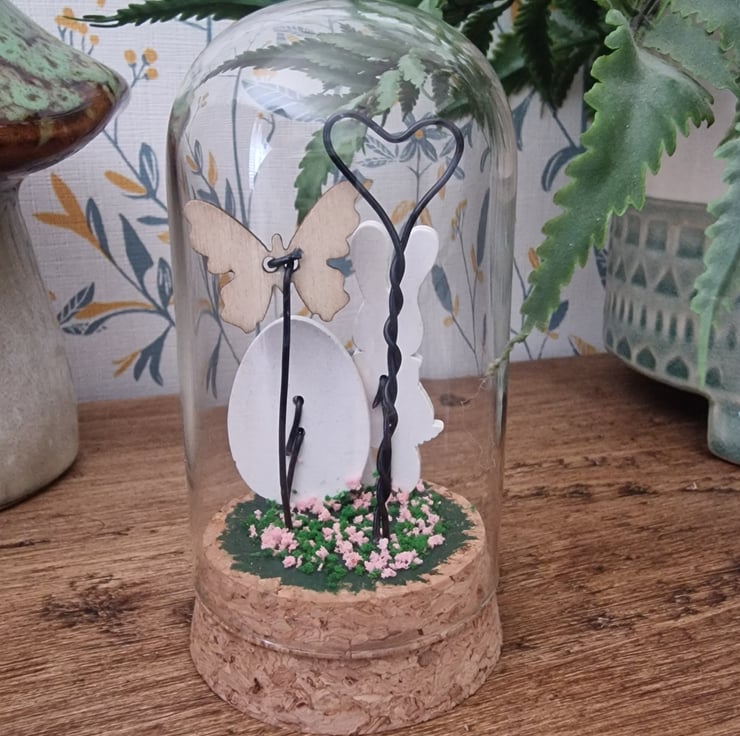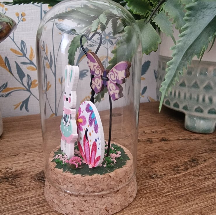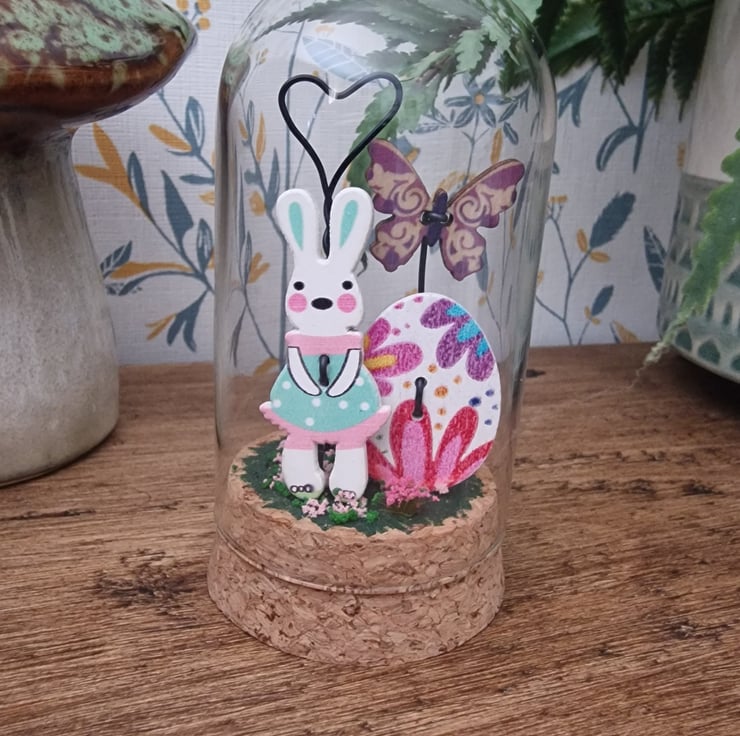 Made using A cute glass dome featuring a quirky bunny sitting in his magical garden.