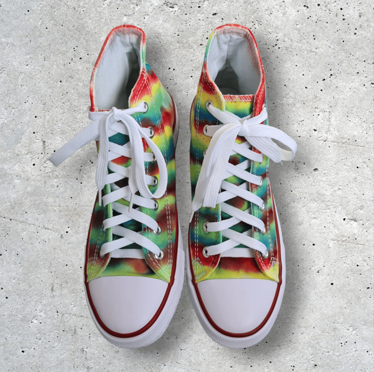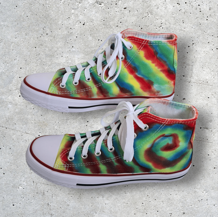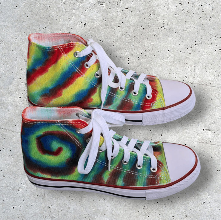 A rainbow swirl design on these unique high tops. Size 39. Treated with waterproofing spray.